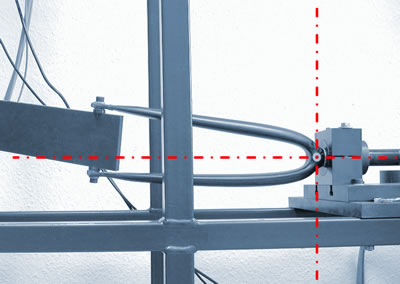 Brake forces – In these tests the fork is tested under angles most similar to those encountered in race applications. The fork’s steerer is fixed, while a hydraulic press attached to the dropouts and the brake bolt simulates braking forces. This setup tests the fork’s reaction to panic-stop braking across its entire length. Both static maximum load tests as well as dynamic cyclical load tests are performed. As in all other tests, the “Scapula SP” shines in the torture chamber as well and demonstrates its enormous reliability.