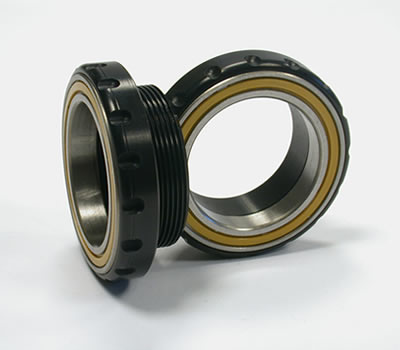 We are using ceramics ball bearings with a specially formulated grease and seal. The main advantage lies in longevity and reduced maintenance more so than ultra-low resistance. Due to the specific properties of steel and ceramics this combination is not suitable for high-impact loads. Thus we will only be offering this bottom bracket for our road cranks.